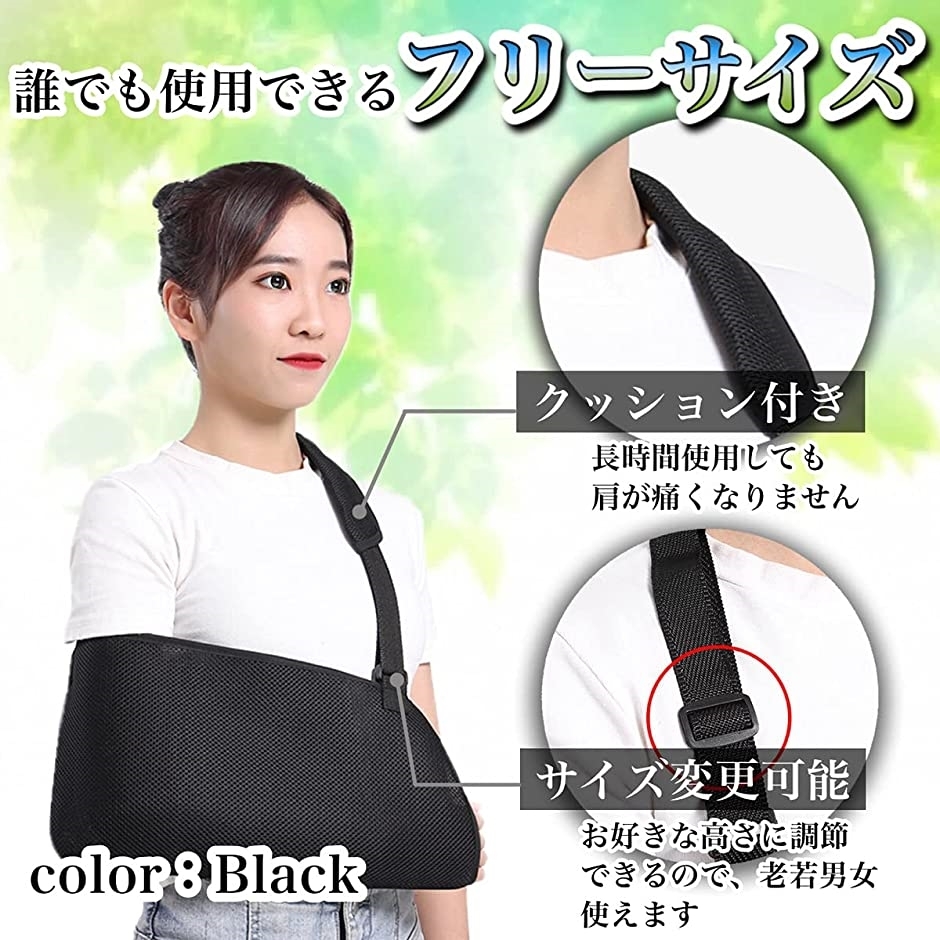 三角巾の代用品に 常に肩から肘の距離を一定に保ちます アタッチメントで簡単調節 Bonbone アームホルダー お求めやすく価格改定 メッシュ フリーサイズ 品番 000 3651 アームスリング 適応身長150cm以上腕の骨折 夏用 三角巾 ブラック